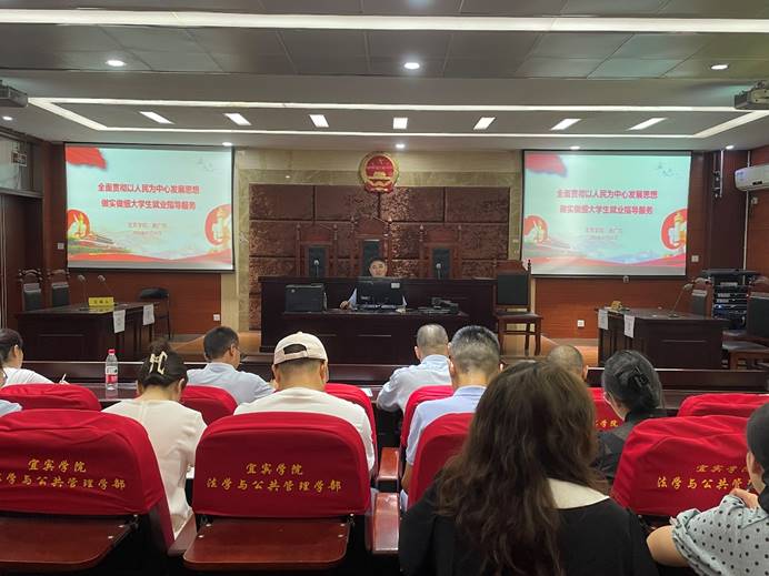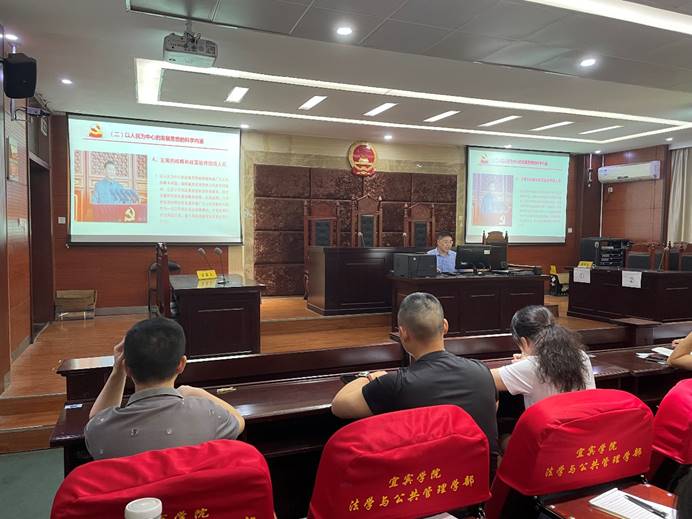 7月5日,在江北校区初心楼模拟法庭,宜宾学院党委常委、副院长周广均以《全面贯彻以人民为中心发展思想 做实做细大学生就业指导服务》为主题讲授专题党课。党委学生工作部(学生处)、体育与大健康学院、法学与公共管理学部全体党员参加学习。