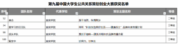 本次大赛共经过了初选、复选和评委会议三轮评选。在法管学部教师晏艳的带领下,冉紫玥、王星鑫、周祺浚、张姸彧、杨嘉俊的作品《源于自然,纵情跋涉》荣获大赛二等奖,由吴秀美指导的《拜耳“科技创造美好生活——健康战士”品牌年度传播计划》、黄璐指导的《澳优不错哟——澳优20周年庆品牌传播方案》、《优续力,廿新生》荣获大赛三等奖。