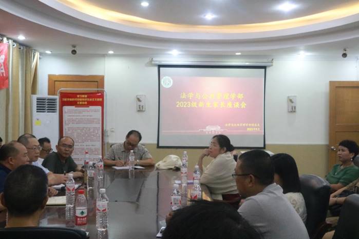 为落实学习贯彻习近平新时代中国特色社会主义思想主题教育内容,加强学校与家长的双向互动,营造家校共育、健康和谐的发展新环境,法学与公共管理学部(下简称:法管学部)于9月7日在初心楼116会议室开展了2023级新生家长座谈会。本次会议特别邀请到了宜宾学院思想家教授杨永明作分享,法管学部部长陈世海、法管学部党总支副书记(负责工作)刘廷华、党总支副书记张波、科研办主任刘华强、部分2023级班级辅导员以及2023级新生家长代表参加本次会议。