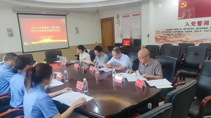 9月21日,珙县人民检察院政治部主任黄建光和检委会专职委员胡天燕一行到宜宾学院参加宜宾学院—珙县人民检察院检校合作座谈会暨签约仪式,宜宾学院法学与公共管理学部党总支副书记刘廷华及相关院领导和指导老师参加座谈。
