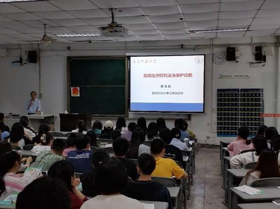 为全面学习贯彻党的二十大精神和习近平法治思想,认真贯彻落实十二届省委依法治省委员会第一次会议精神,法学与公共管理学部(下简称:法管学部)切实开展“宪法法律进高校”活动,邀请西南科技大学法学院罗泽胜教授,于9月22日下午开展主题为“民商经济权利法治保护体系”学术讲座。讲座由法管学部李凤军副教授主持,全校一百余位师生参与了本次讲座。