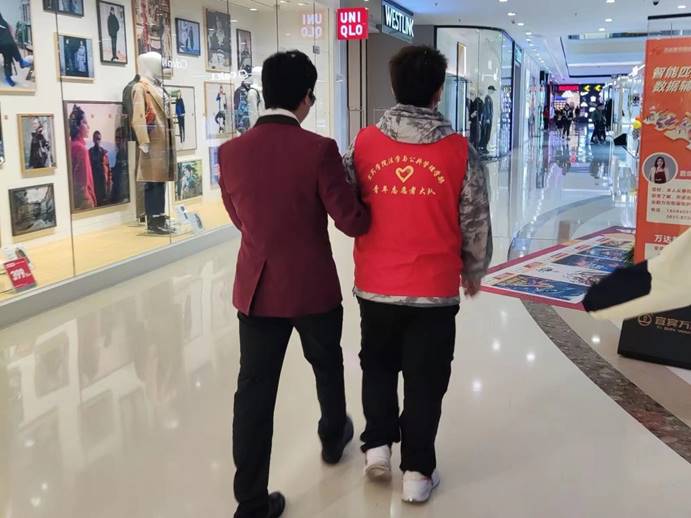 活动伊始,志愿者们为前来参加活动的观众们一一分发了小国旗、塑料拍手器和国旗脸贴,并引导他们有序入座,随后志愿者们来到酒店,结对引导视障朋友们前往各自的席位就座,同时协助他们进行签到。活动期间,志愿者根据视障朋友的需求为其提供帮助。活动结束后,志愿者们一起清扫场,确保没有遗留垃圾后才离开。