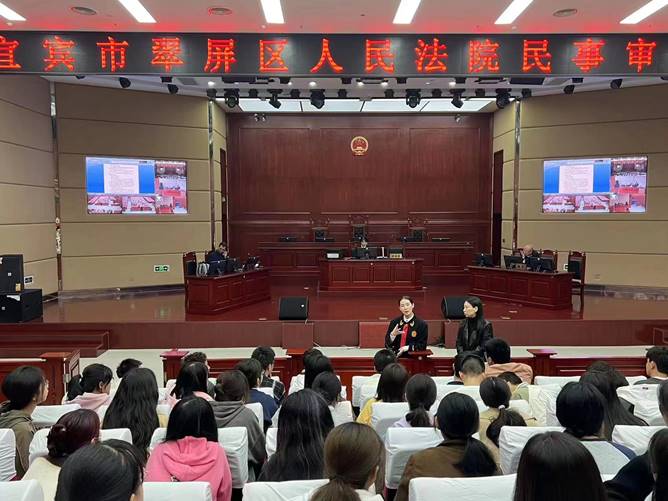 2023 年 9 月 13 日,宜宾学院法学与公共管理学部2023级2班的同学们,为了加强法律知识的实践运用,在老师的带领下,走进宜宾市翠屏区法院,进行了人生中第一次庭审案件的旁听。
