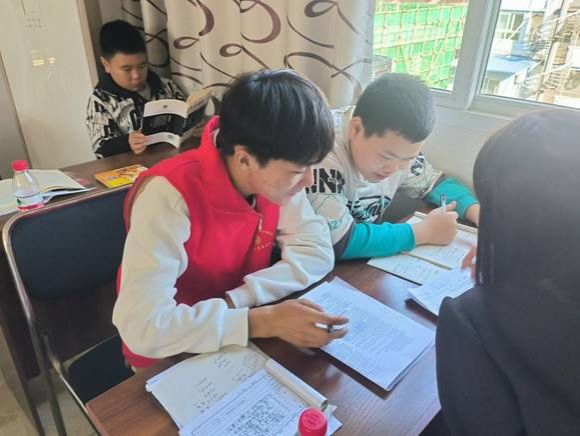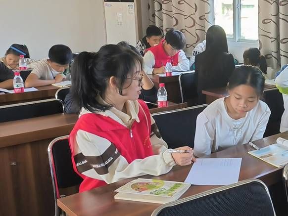 随后,志愿者们带领小朋友们回到座位开始一对一课程辅导。为激发孩子们的学习兴趣,志愿者们在教学过程中奇招百出,比如借助火柴人形象,让小朋友们将字想象成站立的人,帮助他们更好理解正楷“端正”之要义,以此来激发他们学习的兴趣。小朋友们积极学习,踊跃尝试。同时,志愿者们时刻关注孩子们的学习状况,悉心指导。在大家的共同努力下,整个课堂的学习氛围愈发浓厚。