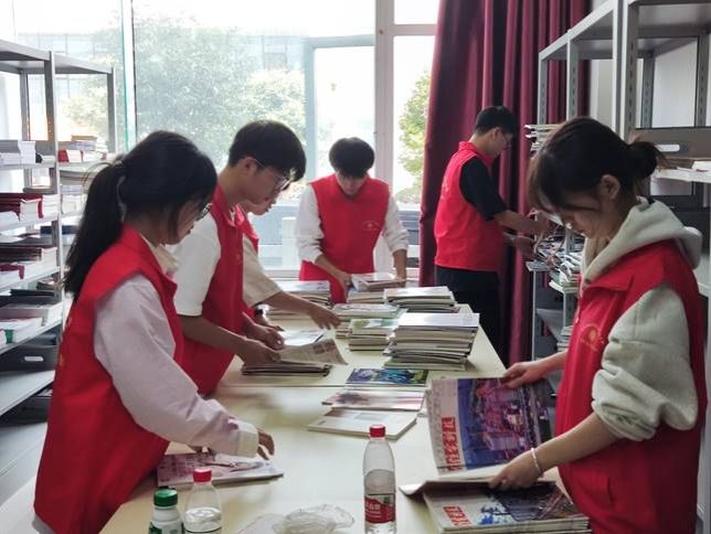 活动伊始,志愿者们怀揣志愿服务激情,整装前往宜宾市图书馆。到达宜宾市图书馆后,志愿者们按照图书馆工作人员的安排分工展开维持馆内秩序、整理馆藏书籍、装订近期报刊等工作。活动现场井然有序,志愿者们分工明确、相互协助,合作将书籍、报刊整理分类。整理结束后,志愿者们在市图书馆浩瀚书海中阅读自己感兴趣的部分书刊,拓宽知识和眼界。站在新中国成立七十四周年回望,通过典籍与先贤对话,在书籍中细品华夏千年文脉源远流长。