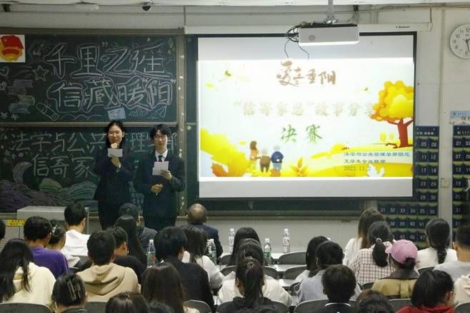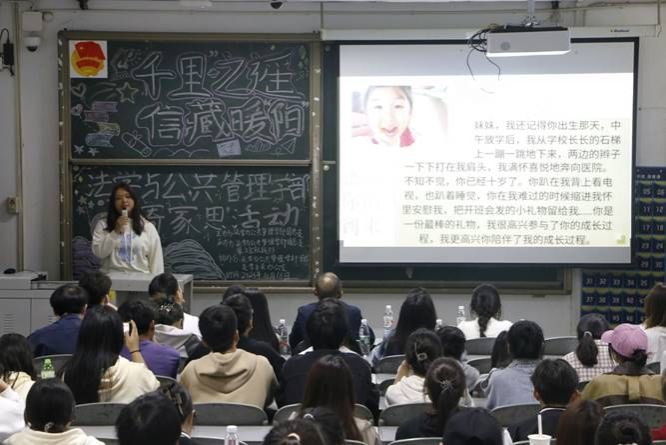 为落实贯彻践行“三全育人”教育理念,以家书相寄强化家庭纽带,弘扬家风美德,11月2日,法学与公共管理学部(下简称:法管学部)于初心楼104教室开展“信寄家思”故事分享决赛。法管学部党总支副书记张波,学生工作办公室教师曾晓琴、谢明聪、李成龙以及团总支学生会主席团部分成员出席本次活动并担任评委。