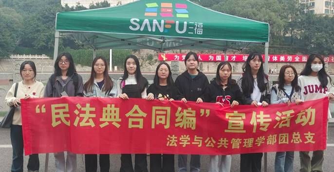 为弘扬社会主义法治精神,加强社会主义法治教育,帮助同学们树立良好的合同法意识,鼓励同学们合理运用所学知识,激发同学们对校园法治活动的参与热情,法学与公共管理学部法律协会(以下简称:法律协会)于2023年11月7日至11月8日在宜宾学院A区一平台旗台处开展了以“民法典合同编”宣传活动,共计五百余人参与本次活动。