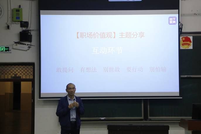 廖德宣表示,当前大学生就业形势严峻,学生应树立正确的职场价值观去迎接社会的各种挑战,同时从自身的就业经历出发,建议大家应明确自己的就业目标,包括行业职位与行业特点等。接着提出公司的发展愿景与人才需求现状,并分享了相关的择业技巧与就业技能,令同学们获益颇丰。在最后的解疑答惑环节中,廖德宣对学生提出的问题进行耐心解答,言无不尽、倾囊相授,对学生未来的就业与择业进行了充分的研讨与交流。