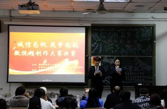在本次比赛中,进入决赛的六支队伍紧紧围绕“诚信为帆·筑梦远航”这一主题,并以微视频为呈现方式,将该队伍对于“诚信资助”的理解和认识融入到演讲之中。其中,张婷组的微视频切身演绎了贪图资助金额但知错就改的故事,警示当代大学生应以诚为本,需时刻树立并坚守正确的价值观;李万柒组则通过讲解微视频中的代表性镜头,围绕诚信主题,传达出以感恩逐梦前行,成就自我的理念。观众互动环节中,同学们积极表达了自己的感悟与体会,并表示通过微视频的形式更能深入地了解国家的资助政策。