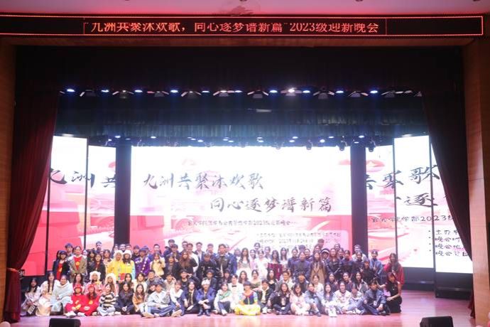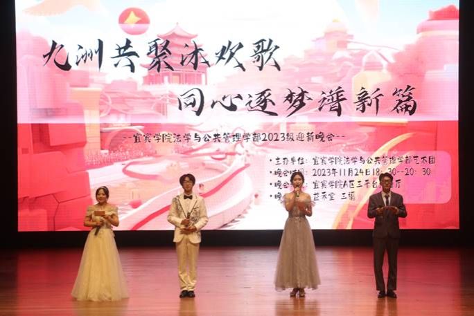 为落实贯彻践行“三全育人”教育理念,表示对新生同学的热切欢迎,展现学生的无限创造力与青春活力,11月24日晚,法学与公共管理学部(下简称:法管学部)于三平台演播厅成功举办了迎新晚会。法管学部副部长周陶、党总支副书记(负责工作)刘廷华、党总支副书记张波、部分辅导员及任课老师出席本次晚会。