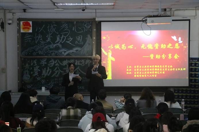 为落实贯彻践行“三全育人”教育理念,积极响应国家资助政策,有效发挥优秀学子的示范引领作用,进一步深化感恩励志教育与提高资助育人实效,11月27日,法学与公共管理学部(下简称:法管学部)于初心楼104教室举行了“以诚为心,无愧资助之恩”资助分享会,法管学部党总支副书记张波、学生工作办公室教师杨肖、曾晓琴、李成龙、陈利敏以及团总支学生会主席团部分成员出席本次分享会。
