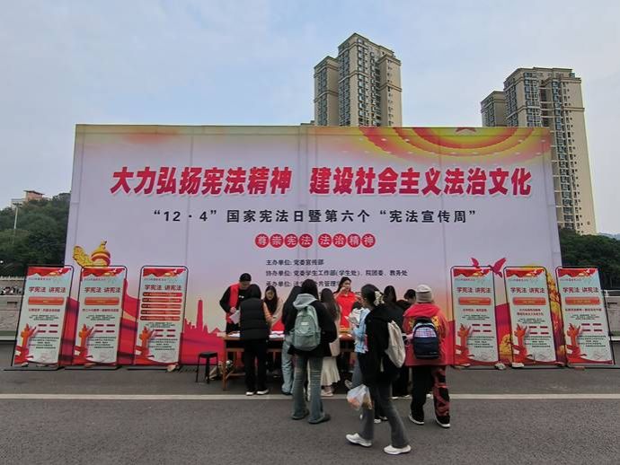 2023年12月4日为第十个国家宪法日。为贯彻落实践行“三全育人”教育理念,大力弘扬宪法精神,维护宪法权威,营造浓厚的法治氛围,11月27日—12月1日,由宜宾学院党委宣传部主办,法学与公共管理学部协办的主题为“宪法宣传零距离·法治理念入我心”的宪法宣传活动于A区一平台旗台处有序开展。