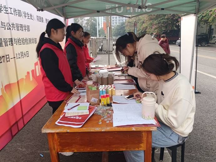 宪法宣传过程中,志愿者们认真派发宪法宣传单,在咨询点处积极宣传宪法和国家基本法律制度,悉心为学校师生科普宪法知识并进行答疑解惑。同时,本次活动通过互动答题的方式激励更多的同学参与到宪法知识学习中来,既丰富了同学们的宪法知识,又进一步营造了学法氛围。