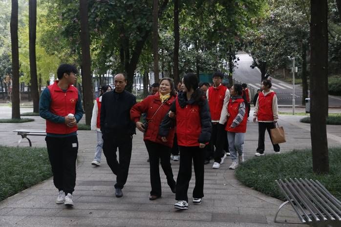 活动最后,视障人士们在志愿者的陪伴下一同走出初心楼。在行走的途中,志愿者们悉心为各位视障人士介绍校园内的各处风光,并引导他们前往南苑食堂用餐。