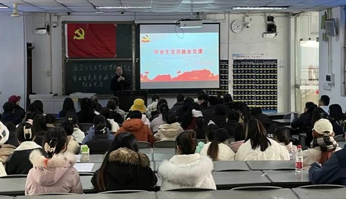 为带动毕业生党员发挥先锋模范作用、促进毕业生就业的主动性与积极性。12月20日,宜宾学院法学与公共管理学部(下简称法管学部)党总支于初心楼104教室开展“毕业生党员就业主题党课”,本次活动由法管学部正处级组织员蒲东升、党总支副书记张波、第一学生党支部书记杨肖、第二学生党支部书记陈利敏、第三学生党支部书记王馨及全体毕业生党员出席。