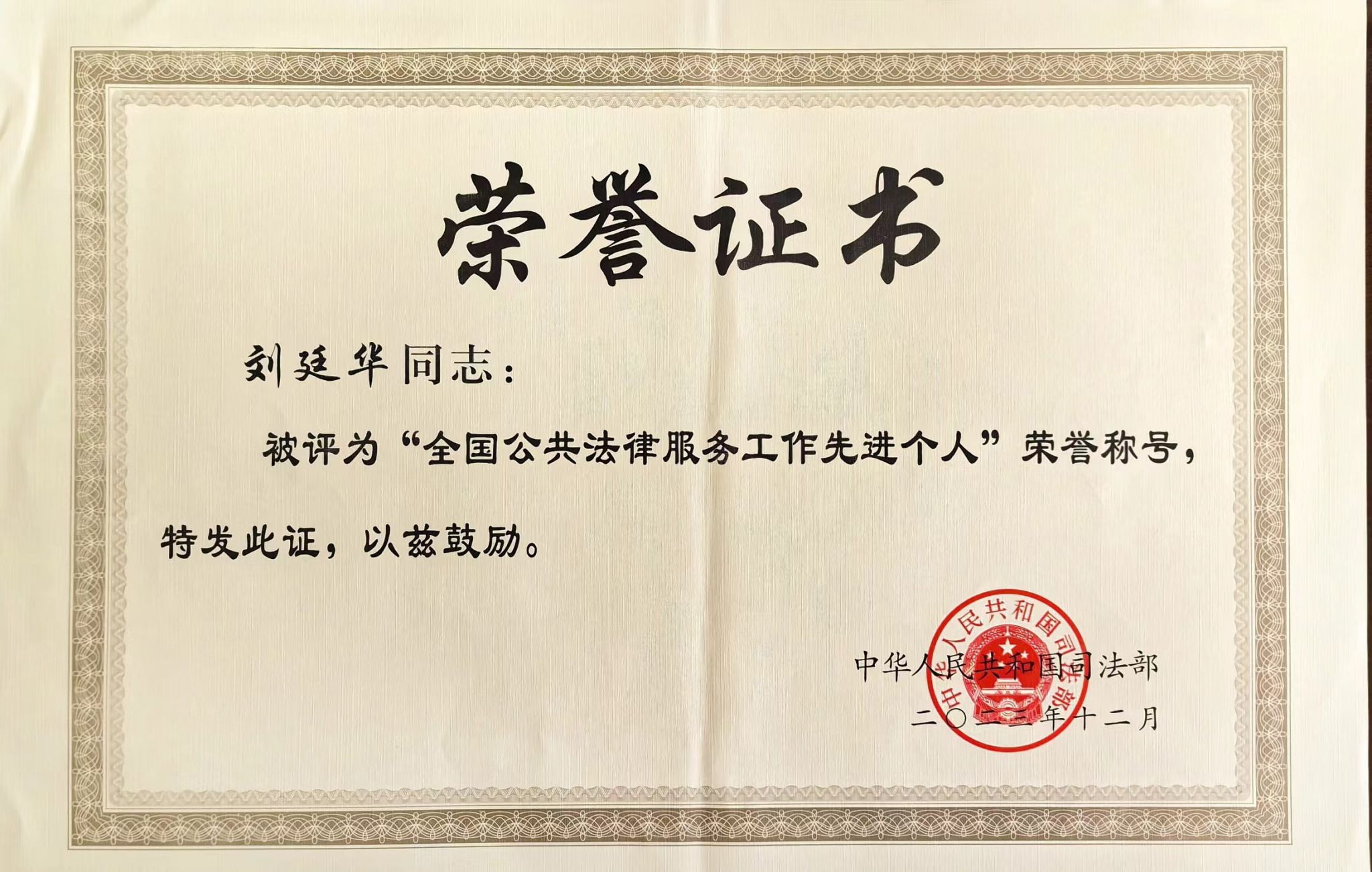 近日,司法部在京召开全国法律援助和公共法律服务工作先进集体先进个人表彰大会暨现代公共法律服务体系建设推进会,表彰全国法律援助先进集体、先进个人和公共法律服务先进集体、先进个人,部署新征程深化公共法律服务体系建设重点任务。据《司法部关于表彰全国法律援助和公共法律服务工作先进集体先进个人的决定》(司发通〔2024〕18号),我校法学院教师刘廷华同志获“全国公共法律服务工作先进个人”荣誉称号。