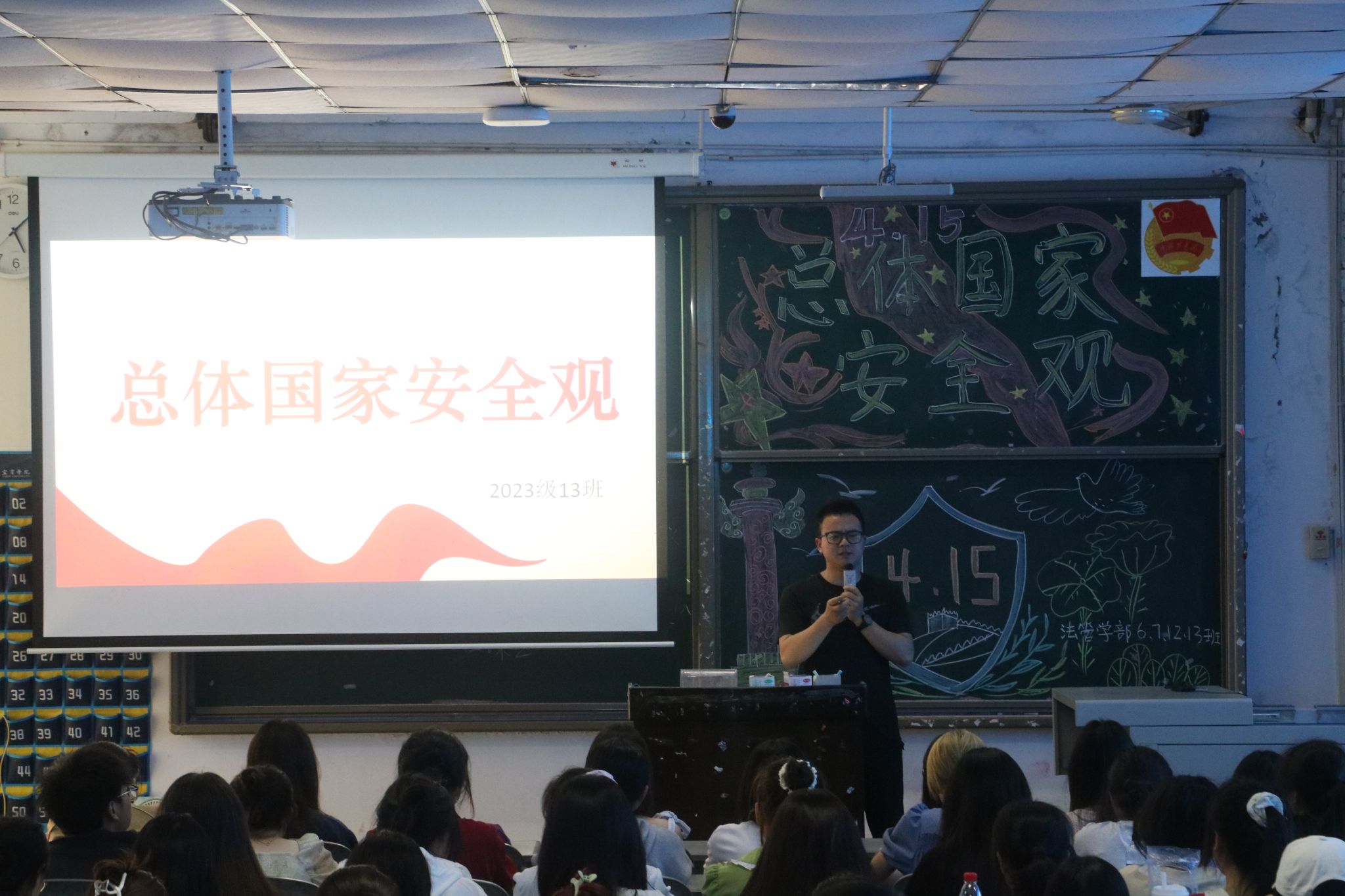 为贯彻落实习近平总书记关于全面加强国家安全教育的重要指示精神,提高同学们的国家安全意识,强化国家安全责任感,筑牢国家安全防线,4月14日,法学与公共管理学部(下简称:法管学部)于初心楼各教室开展了“总体国家安全观”主题班会。