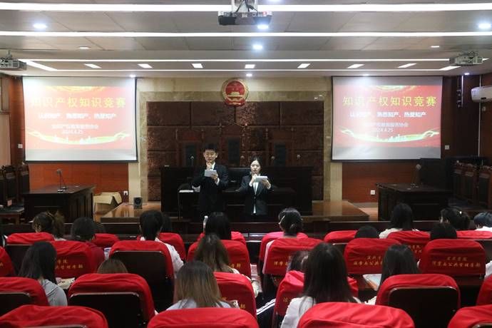 为落实贯彻“三全育人”教育理念,宣传知识产权的基本知识、法律法规与司法解释,讲好中国知识产权故事,4月25日,法学与公共管理学部(下简称:法管学部)于初心楼模拟法庭举办了以“知识产权转化运用促进高质量发展”为主题的知识竞赛。法管学部实践与创新中心主任李凤军、受邀嘉宾知识产权教育服务协会副会长杨媛青出席本次活动。