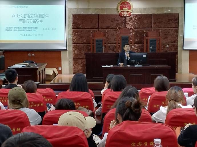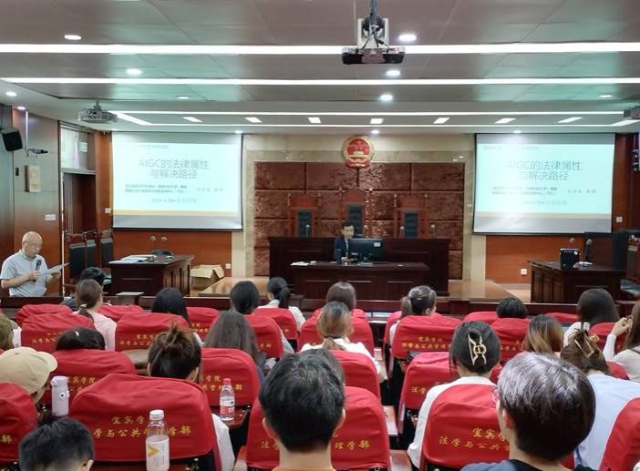 在讲座中,王教授首先通过三个典型案例入题,并结合生活实际生动形象地为大家介绍了什么AIGC;接着详细地阐述了AIGC的相关法律属性以及AIGC的保护路径;最后,王教授结合学界认知和自身研究、实践经验针对AIGC 的发展提出了几种设想,启发同学们思考。王教授以简洁明快、明白晓畅的语言风格和贴近民众生活的具体实例与师生们交流,深入地促进学生对讲座主题的理解。讲座结束后,学生们把握机会积极提问,王教授耐心地为大家答疑解惑。