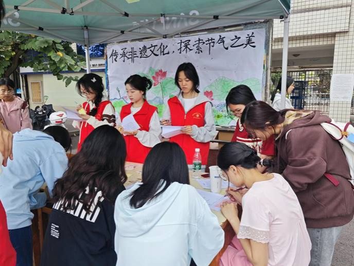 为加强全体师生对节气文化的认知和理解,推动以节气为载体的非遗文化传承与发展,2024年4月24日,宜宾学院法学与公共管理学部(下简称:法管学部)团总支青年志愿者队于宜宾学院A区一平台开展了以“传承非遗文化,探索节气之美”为主题的宣传实践志愿活动。