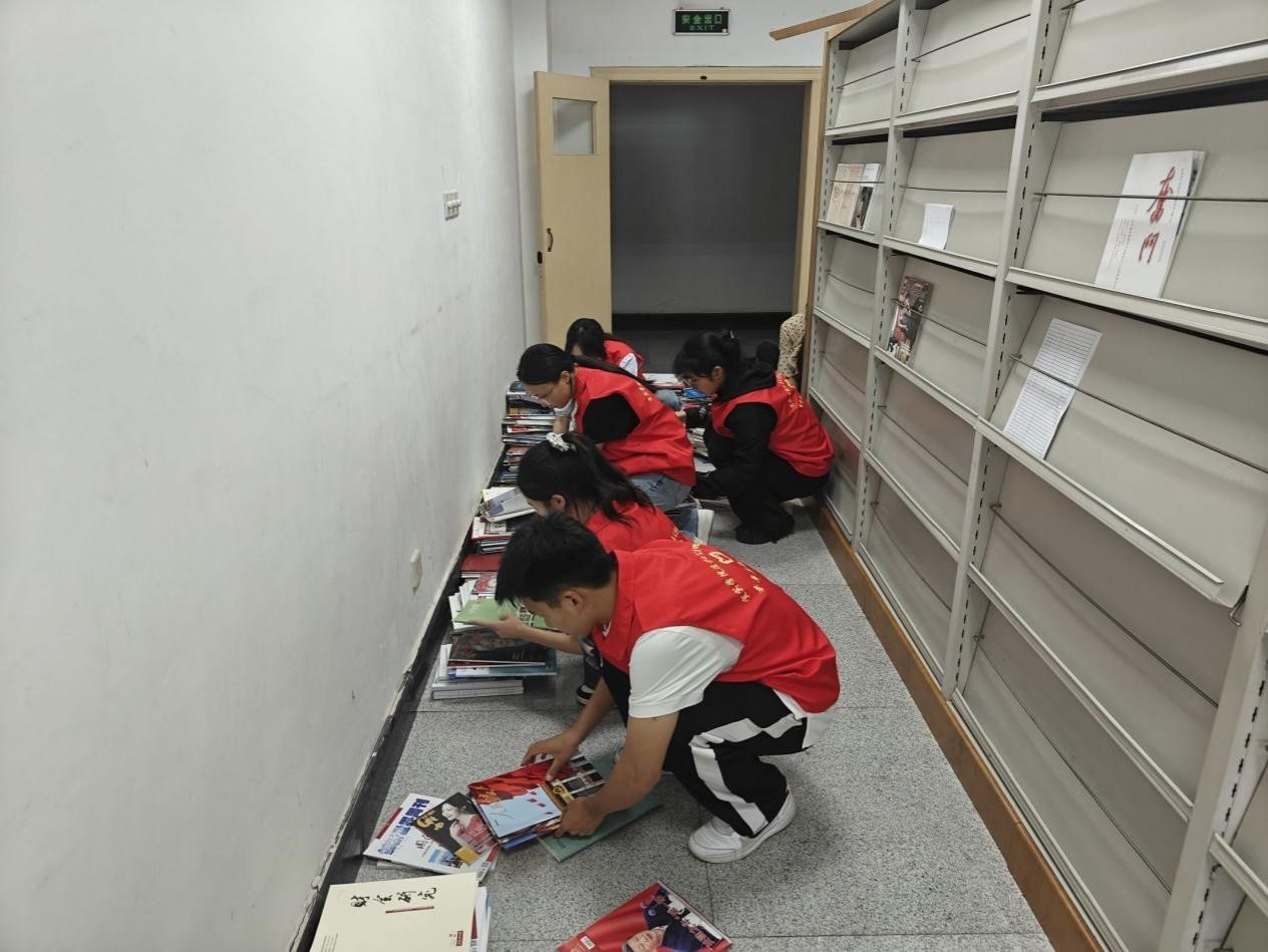 随后,志愿者们在图书管理员的带领下进行馆藏图书整理工作。志愿者们干劲十足,活动现场井然有序。志愿者们齐心协力,成功完成了图书整理工作。活动结束后,志愿者们纷纷表示要以图书馆内的同学为榜样并感谢图书管理员的辛勤付出。