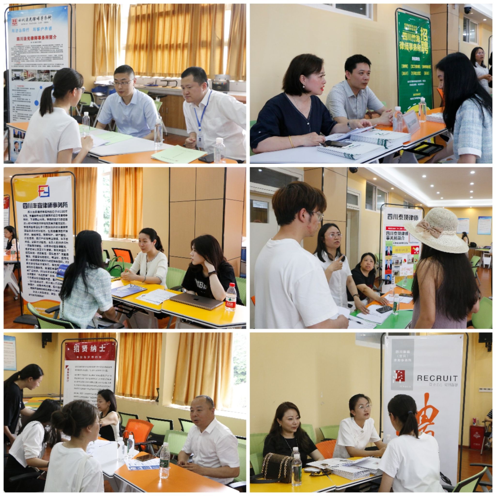 会上,袁骏首先提出青年大学生要响应党的号召,积极投身于法律行业的建设,并讲述了宜宾市律师行业的发展现状以及对大学生就业的帮扶政策。随后由各律师事务所代表介绍其相关情况,他们通过对其发展历程、相关荣誉、律所特色、业务范围、律师团队以及办公环境等进行讲解,为现场同学未来职业发展提供更多选择。6家律师事务所都秉持着招贤纳士的态度,与同学们面对面交流,对未来的工作环境、工作时间、法律实务等进行详细介绍,不仅增加了同学们的行业知识,更让其对就业择业有了清晰的认识,促进更好的双向选择。