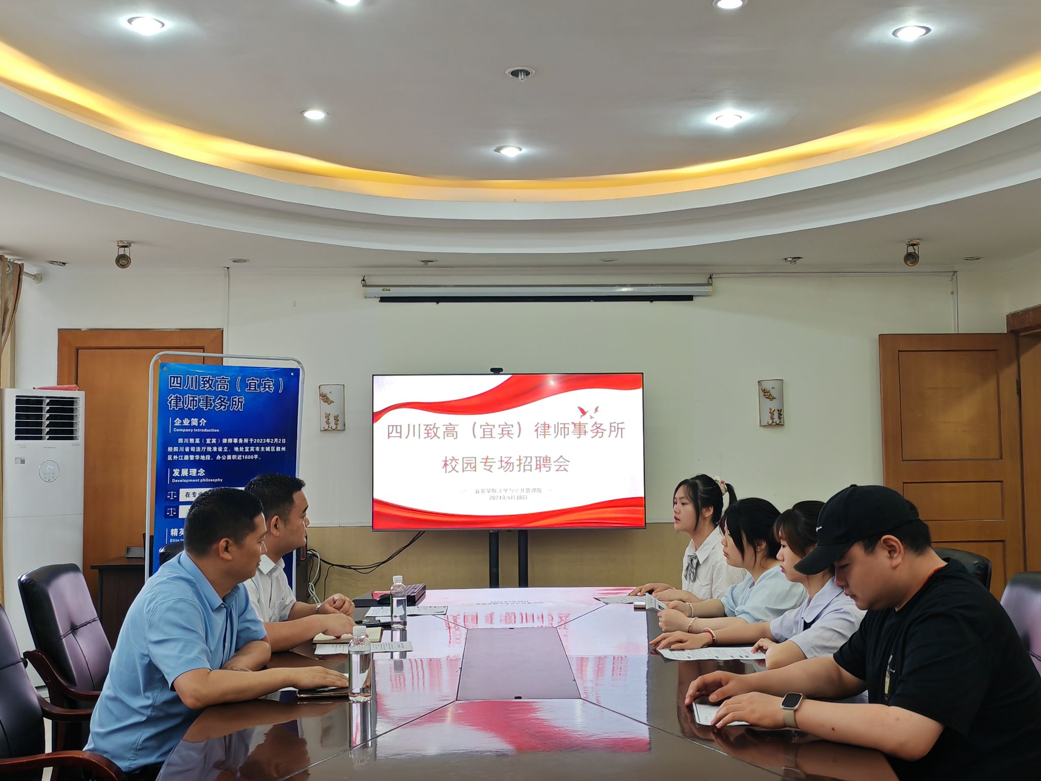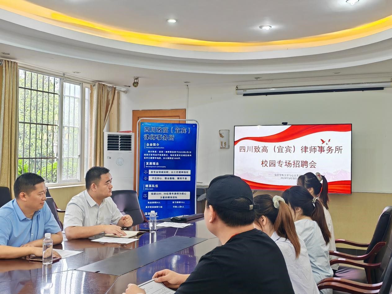 为贯彻落实习近平总书记来川来宜来校重要指示精神和国家关于高校毕业生就业工作的决策部署,积极落实就业优先战略,进一步推进2024届法学与公共管理学院(以下简称法管学院)毕业生就业工作落实落细,实现毕业生更充分和更高质量的就业。5月18日,法管学院于初心楼116会议室举办了校园专场招聘会,加快推进2024届毕业生就业工作,四川致高(宜宾)律师事务所副主任罗联方、杨洪以及部分学生参加本次招聘会。