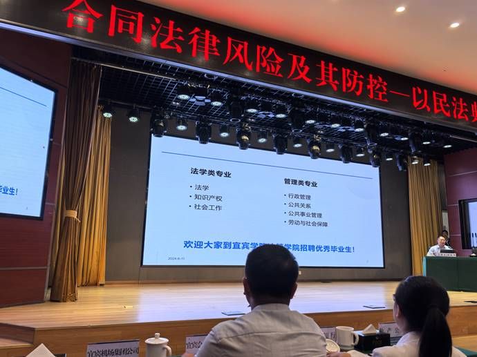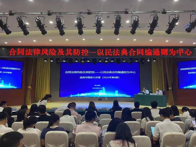 2024年6月12日下午,宜宾学院法管学院刘廷华教授受邀参加宜宾市国资大讲堂(2024年第6期),专题讲授《合同法律风险防控》。市属企业分管负责人及有关部门负责人、市建投集团各子公司相关负责人、市国资委机关干部职工共计150余人参加培训。