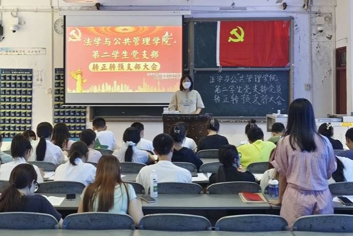 为进一步加强党员队伍建设,增强党员队伍生机与活力,强化党员纪律意识。6月13日,宜宾学院法学与公共管理学院党总支通过线上线下相结合的方式于初心楼201、202、214开展转正转预支部大会,第一学生党支部书记杨肖、第二学生党支部书记陈利敏、第三学生党支部书记王馨、106名党员及党校20期发展对象参与本次大会。