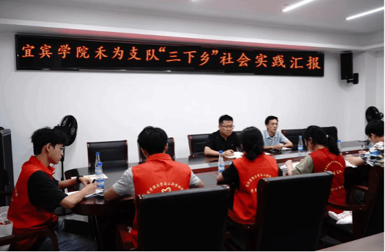 7月25日,禾为支队来到兴文县组织部会议室,针对此次走访学习情况向刘祥等人进行了汇报。在汇报过程中,团队成员积极主动地分享了此次走访的心得感悟,并发表了对驻村干部工作计划的建议。随后,刘祥对此次“三下乡”社会实践活动开展的积极意义表示了肯定,并指出“建设宜居宜业的和美乡村是一场持久战,我们要认真思考驻村干部在其中的桥梁作用,将‘人-产-村’三方紧密结合在一起。”