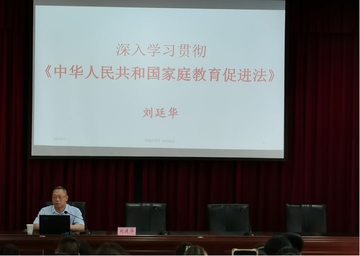 受宜宾市教育和体育局邀请,刘廷华教授于2024年8月2日下午开设《中华人民共和国家庭教育促进法》专题讲座,宜宾市各区县教育主管部门负责法治教育工作的内设股室负责人、法治专干和学校法治课骨干教师参加培训。