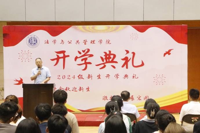 为贯彻落实“三全育人”教育理念,开创蓬勃向上的新气象,增强同学们的责任感与使命感,9月14日,法学与公共管理学院(下简称:法管学院)于宜宾学院A区体育馆举行了2024级新生开学典礼。本次典礼由团总支书记王燕主持,法管学院党总支副书记(负责工作)刘廷华、正处级组织员蒲东升、党总支副书记张波、副部长周陶、党政办公室主任冯丽丽、2024级专兼职辅导员、各科任教师及2024级全体新生参加此次典礼。