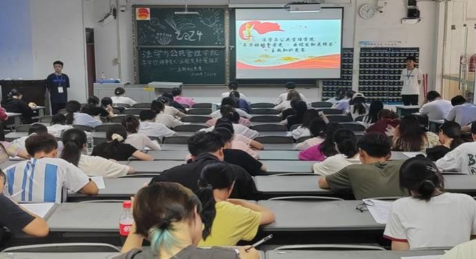 为深入学习贯彻习近平新时代中国特色社会主义思想,加强大学生思想教育,激发青年学生的爱党爱国热情,9月25日,法学与公共管理学院党委学生党员工作站于初心楼103、104教室举办了“年华铿锵争荣光·云程发轫展锋芒”主题知识竞赛。