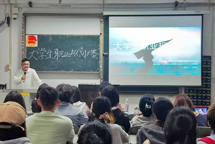 为落实贯彻“三全育人”教育理念,提升大学生的职业规划能力,激发他们对未来职业发展的热情和信心,11月4日,法学与公共管理学院(以下简称:法管学院)于初心楼104教室举办了以“筑梦青春志在四方,规划启航职引未来”为主题的职业规划大赛。法管学院学生工作办公室教师杨肖、曾晓琴以及团总支学生会主席团部分成员出席本次活动并担任评委。