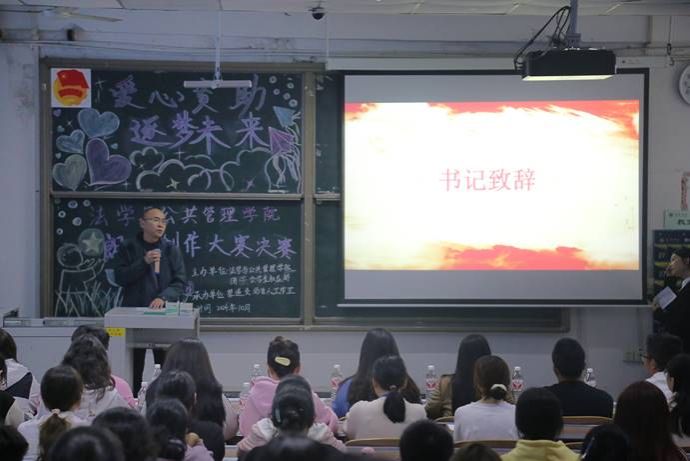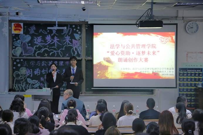 为落实贯彻“三全育人”教育理念,落实立德树人根本任务,不断完善资助育人体系,创新资助育人举措,强化资助育人功能,助力家庭经济困难学生成长成才。10月31日,法学与公共管理学院馨遇资助育人工作室与团总支学生会学生权益部在初心楼214教室举办了以“爱心资助·逐梦未来”为主题的朗诵创作大赛。法管学院党总支副书记张波,学生工作办公室教师王馨、曾晓琴、谢明聪以及团总支学生会主席团参与此次活动并担任评委。