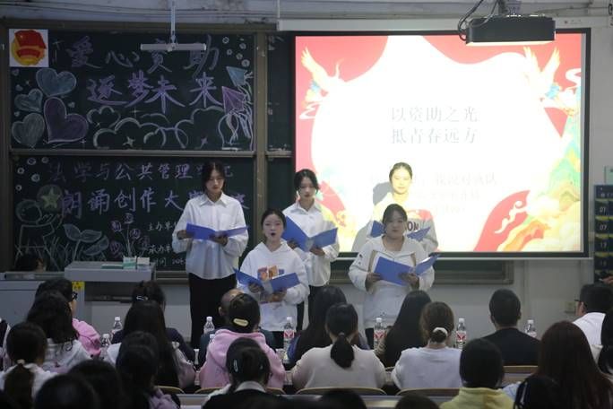 本次决赛共有六支队伍参与,各队紧扣主题,通过朗诵技巧、背景音乐以及幻灯片展示的巧妙结合,传达资助精神,诵响感恩之音。作品《以资助之光,抵青春远方》从炮火皇皇诵到如今时代,展现资助之光照亮青年岁月,青年之志也将回报时代祖国。《光启善缘:资助之光,点亮未来》则将资助视为学子实现梦想的一道微光,激励同学们传递这份善缘,共创美好社会。大赛还设置有奖问答环节,进一步宣传资助政策,点燃在场观众热情。