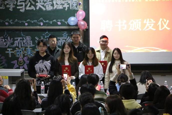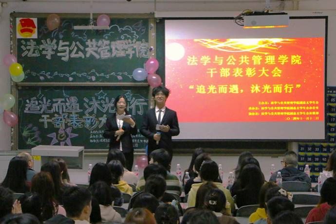 为贯彻落实“三全育人”教育理念,进一步加强学生干部无私奉献的服务意识、勇于担当的责任意识以及全面发展的成才意识,法学与公共管理学院(以下简称:法管学院)于11月12日在初心楼104教室举行了“追光而遇,沐光而行”干部表彰大会。法管学院党委副书记张波,学生工作办公室教师王馨、杨肖、陈利敏、曾晓琴、宋晚秋、谢明聪以及第四届、第五届团总支学生会的干部同学参加本次大会。