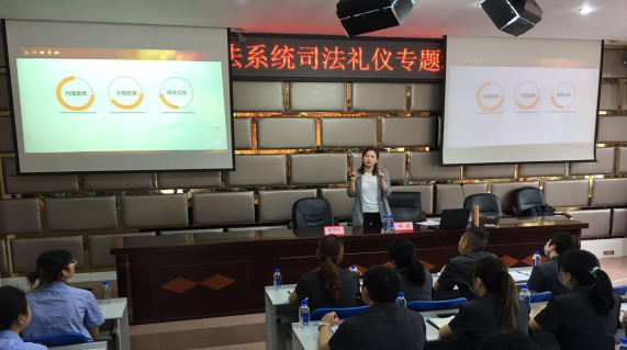 培训课上,杨东老师围绕仪表礼仪、服饰礼仪、庭审礼仪、接待礼仪等方面内容,结合生动的图片、事例,生动详实地讲解司法礼仪的重要性及实践运用,并通过亲自示范站姿、坐姿、握手、进出会场注意事项,加深参训干警对司法礼仪的理解和掌握,现场气氛轻松而热烈。