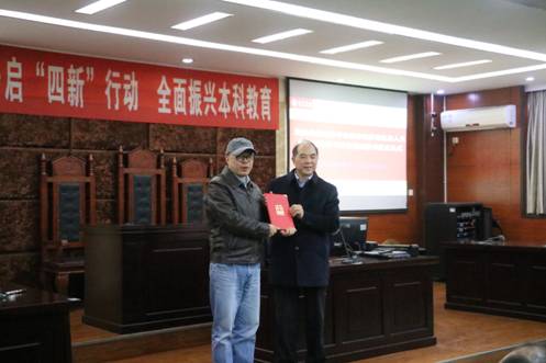 11月24日,法学与公共管理学部在模拟法庭举行仪式,聘任四川大学文科杰出教授詹石窗为法管学部及宜宾学院应用人文教育研究中心特聘教授。法学与公共管理学部部长何一教授为詹石窗教授颁发聘书。法管学部部分领导及教师、一百多名学生参与见证了聘任仪式。詹石窗教授在宗教学、道学及哲学领域研究成果卓著,在学界享有盛誉。法管学部及应用人文教育研究中心以此次特聘为契机,请詹石窗教授对学部的学科建设及发展、中青年教师的科研工作、应用人文教育研究中心发展等方面提出建议和指导,这对于学部今后的发展意义重大。