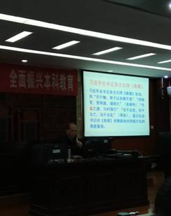 聘任仪式后,詹石窗教授还为法管学部师生带来了一场内容深刻、深入浅出的讲座——《易经奥秘及其管理智慧》。他以宜宾学院校训和宜宾学院精神为导入,将其与易经的精神内涵结合展开讲解,又将讲述内容引向管理智慧。他特别针对易经中的天人合一、整体把握、预知吉凶、进退合时、刚柔得中、保合太和等等管理智慧做了深刻生动的阐述。学生们听得认真,思考深入,并在互动交流环节提出了有一定深度的问题,詹石窗教授详细地谈了自己的见解,学生们犹如拨云见日,讲座在热烈的掌声中结束。