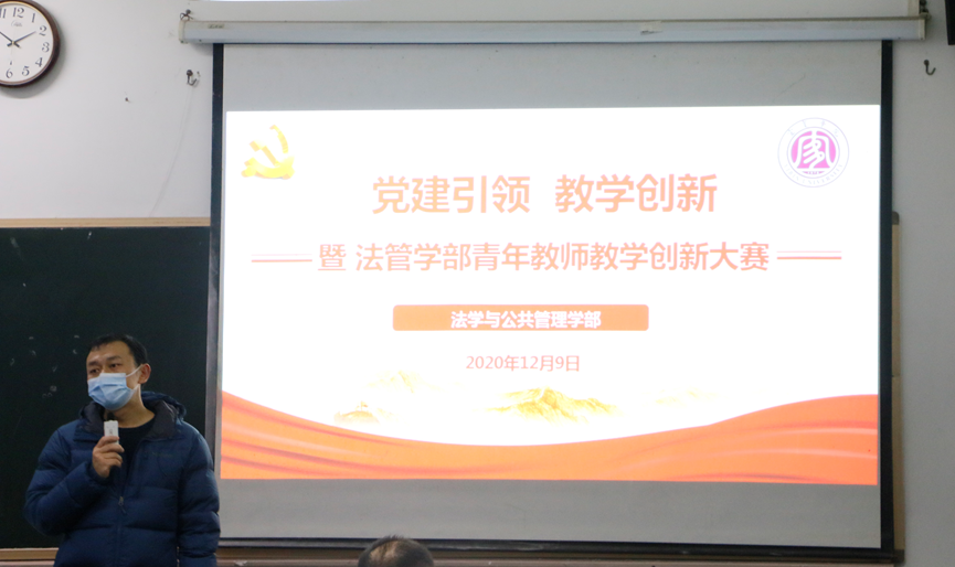 为贯彻全国教育大会精神和《中国教育现代化2035》,落实教育部高等教育司《关于举办首届全国高校教师教学创新大赛的通知》,进一步推动党建标杆学部建设和学部工会“创新之家”建设工作,引导教师潜心教书育人,加快推进课堂教学改革与创新,2020年12月9日下午3点,法学与公共管理学部举办了“党建引领教学创新”暨“法管学部青年教师教学创新大赛”,活动在初心楼205教室举行。学部部长何一,副书记(负责工作)刘廷华,正处级组织员蒲东升,副书记张波,副部长周陶,以及各教研室参赛教授、副教授、全体青年教师和部分学生参加了活动。