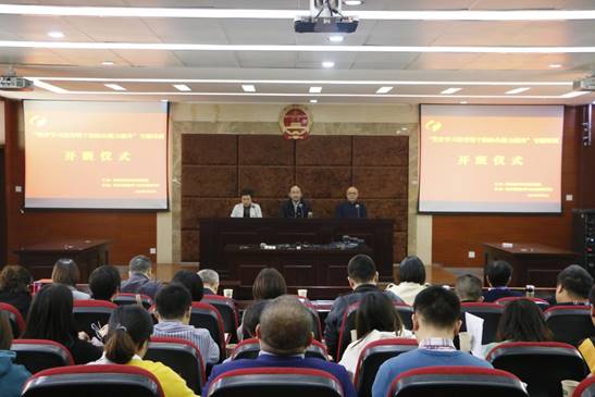 为提升国家统计调查部门各级领导干部综合素质与业务水平,2021年3月24日13:30,由国家统计局宜宾市调查队主办,宜宾学院法学与公共管理学部(下称法管学部)承办的“党史学习教育暨干部综合能力提升”专题培训班开班仪式在宜宾学院A区一教模拟法庭举行。宜宾学院法管学部部长何一和宜宾调查队队长范勇等领导出席此次开班仪式,同时到场参加会议的还有四十余名党员干部。