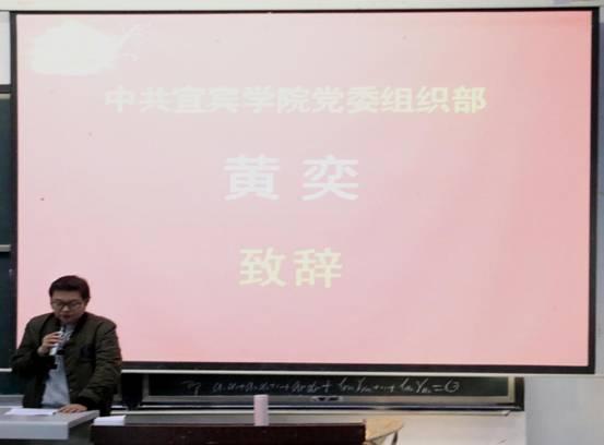 宜宾学院党委党校副校长黄奕代表学院党委组织部致辞,他对学员们的到来表示热烈的欢迎,向他们介绍了宜宾学院的办学历史与办学规模,希望他们体会党组织的关怀,珍惜学习机会,严格要求自己,学有所得、学有所用,以全新的面貌投入到宜宾市的基层建设中去。
