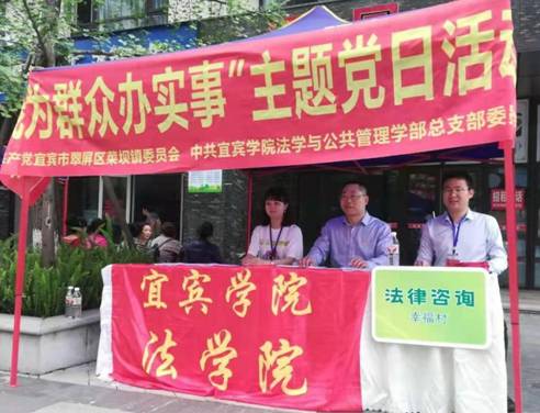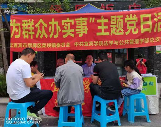 法管学部党总支与菜坝镇党委商定,在翠屏区菜坝镇绿园小区和幸福村设立党组织结对共建基地,广泛开展法治宣传、法律援助、法律咨询、矛盾纠纷调解等活动,在法治轨道推进治理体系和治理能力现代化。