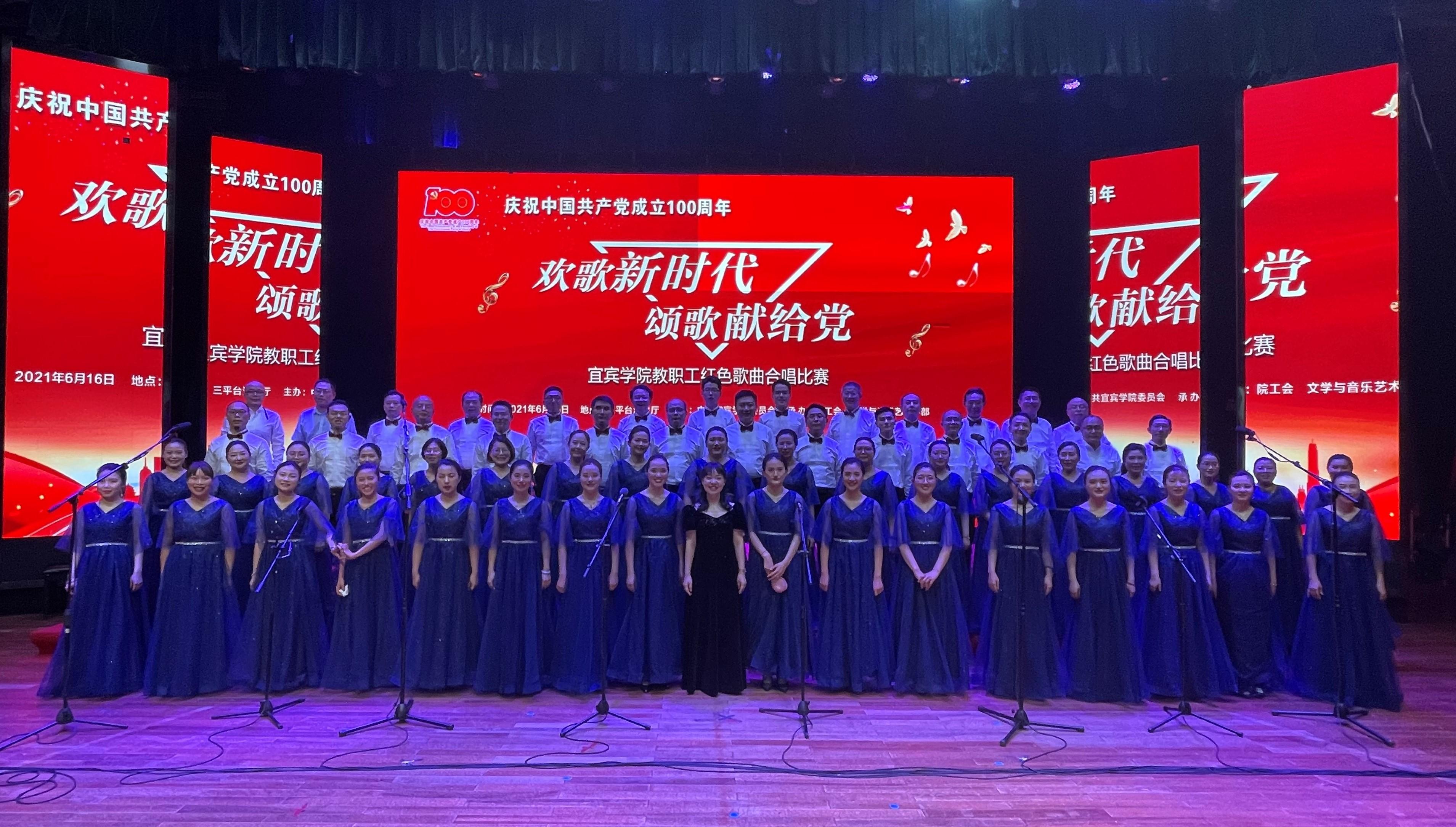 为庆祝建党一百周年,展现学部教职工的良好精神风貌,法学与公共管理学部工会在学部党总支的领导下积极组织教职工参与宜宾学院党委于2021年6月16日下午在三平台演播厅主办的“欢歌新时代·颂歌献给党”教职工红色歌曲合唱比赛,荣获二等奖第一名。