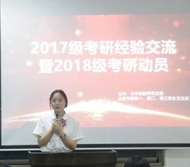 随后,17级考研成功的同学们从院校选择、时间规划、考试准备等方面分享了自己的备考过程,还讲解了专业课和公共课的学习方法,同时向大家推荐了一些有助学习的APP以及一些实用的公众号。考取选调生和公务员的同学为大家分享考试经验和心得时,告诉同学们务必利用好暑假时光,厚书读薄,薄书读厚,制定好自己的学习计划,希望同学们在考研路上始终坚持努力和自信,最后都成功上岸。