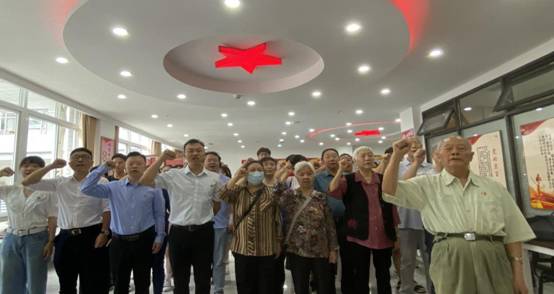 分享会结束后全体党员代表一起参观了宜宾学院党性教育中心,在大厅内重温入党誓词。全体党员代表高举右拳,面对党旗再一次庄严宣誓。