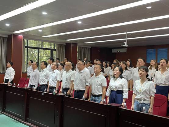 当雄壮的国歌声响彻广场,鲜艳的五星红旗冉冉升起时,法管学部全体老师在会场也集体起立,一起高唱国歌。祝福党的百年华诞,祝愿我们的祖国繁荣昌盛。