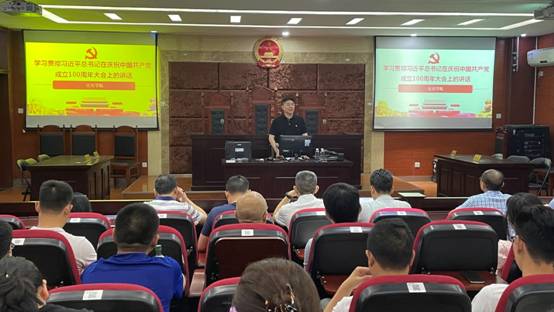 周广均围绕着一个庄严宣告,一个百年主题,四个伟大成就,一个伟大精神,九个必须,一个殷切期望,一个伟大号召,全面系统的阐述了习近平总书记“七一”重要讲话的核心要义。