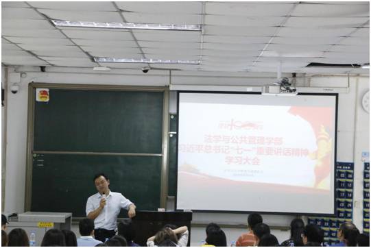 一百年风雨兼程,一百年砥砺奋进。7月5日中午,法学与公共管理学部组织学部全体学生在初心楼开展学习习近平总书记在庆祝中国共产党成立100周年大会上重要讲话精神专题学习会。法学与公共管理学部部长何一、党总支副书记单琰秋、副部长周陶出席,公共管理学院教师党支部党员老师参与到本次专题学习中。